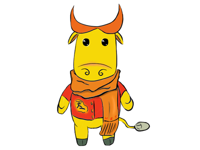 设计说明:牛,具有着默默无闻、勤恳劳作的特点,很符合“天一红人堂”这栏目的采访对象的草根特性,再者又因为今年是牛年,所以我选择了用牛这一动物形象 来设计公仔,寓意着这栏目将会越办越牛。我设计的牛,以给人喜气的暖色:红及黄,为主色调。衣服上的“天一”以及围巾末端的“红人堂”拼音缩写“HRT”恰能 组合成这档栏目的名称。另我将牛尾巴设计成了鼠标,牛鼻孔设计为倒写的e,寓意这当栏目是与网络有关。