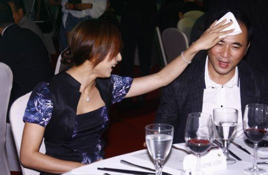 胡静为老公擦汗秀恩爱 与高层推杯显贵妇气
